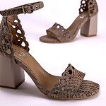 Елегантни дамски сандали от естествен велур и кожа с принт в бежов цвят