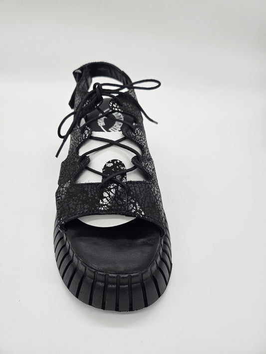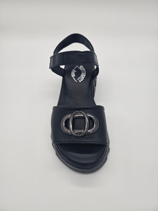 Елегантни дамски черни сандали от естествена кожа и кожа с принт
