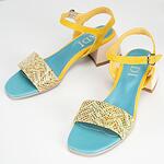 Елегантни дамски жълти сандали от естествена кожа с принт и велур