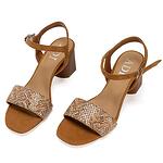 Елегантни дамски сандали от естественa кожа с принт и велур в цвят таба