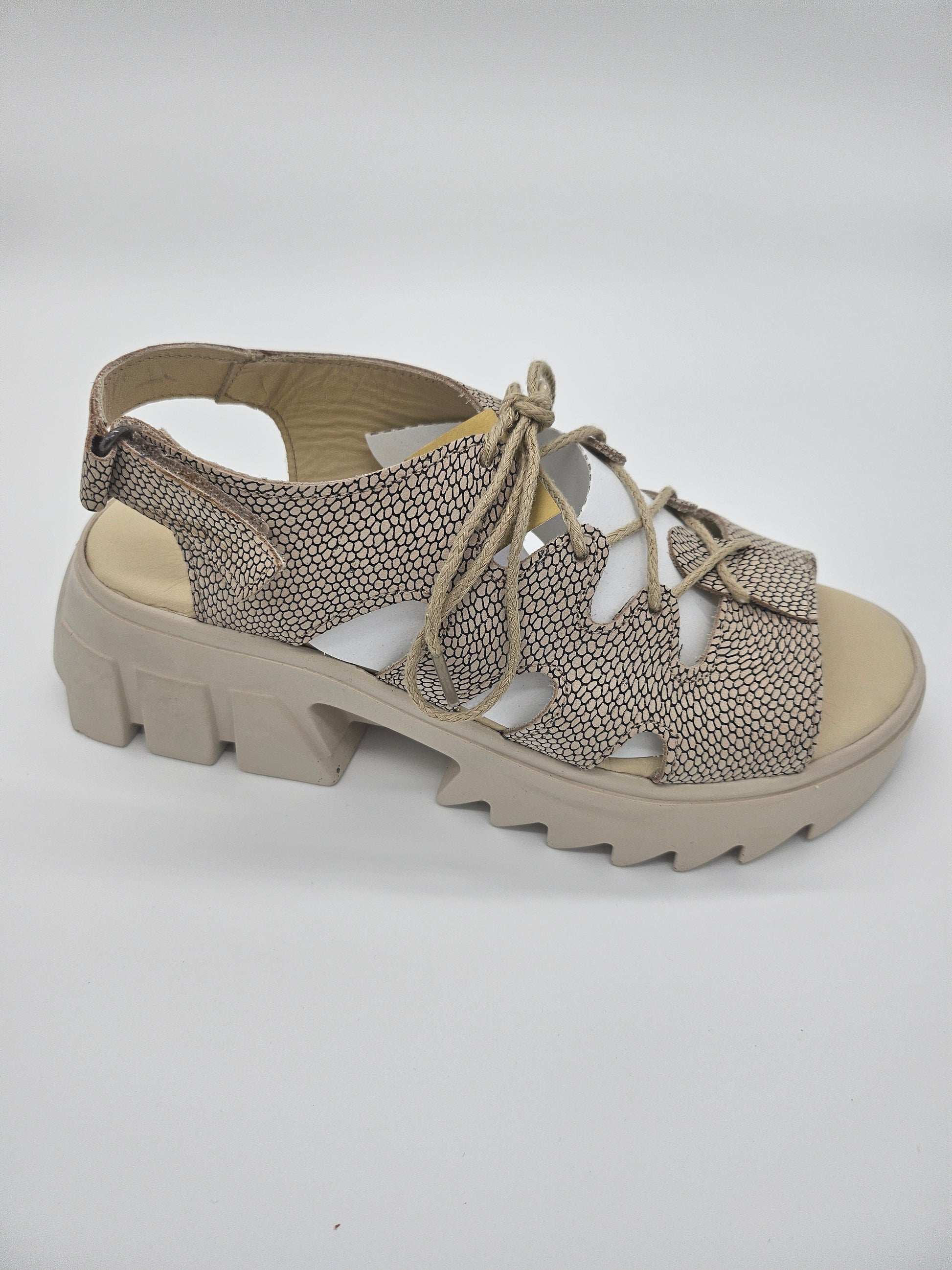 Представяме ви тези стилни и удобни дамски сандали, изработени от висококачествена естествена кожа в нежен бежов цвят. Меката и комфортна стелка от естествена кожа се грижи за максимален комфорт на вашите крака, а каишката с велкро лепенка осигурява лесно обуване и регулиране на ширината.