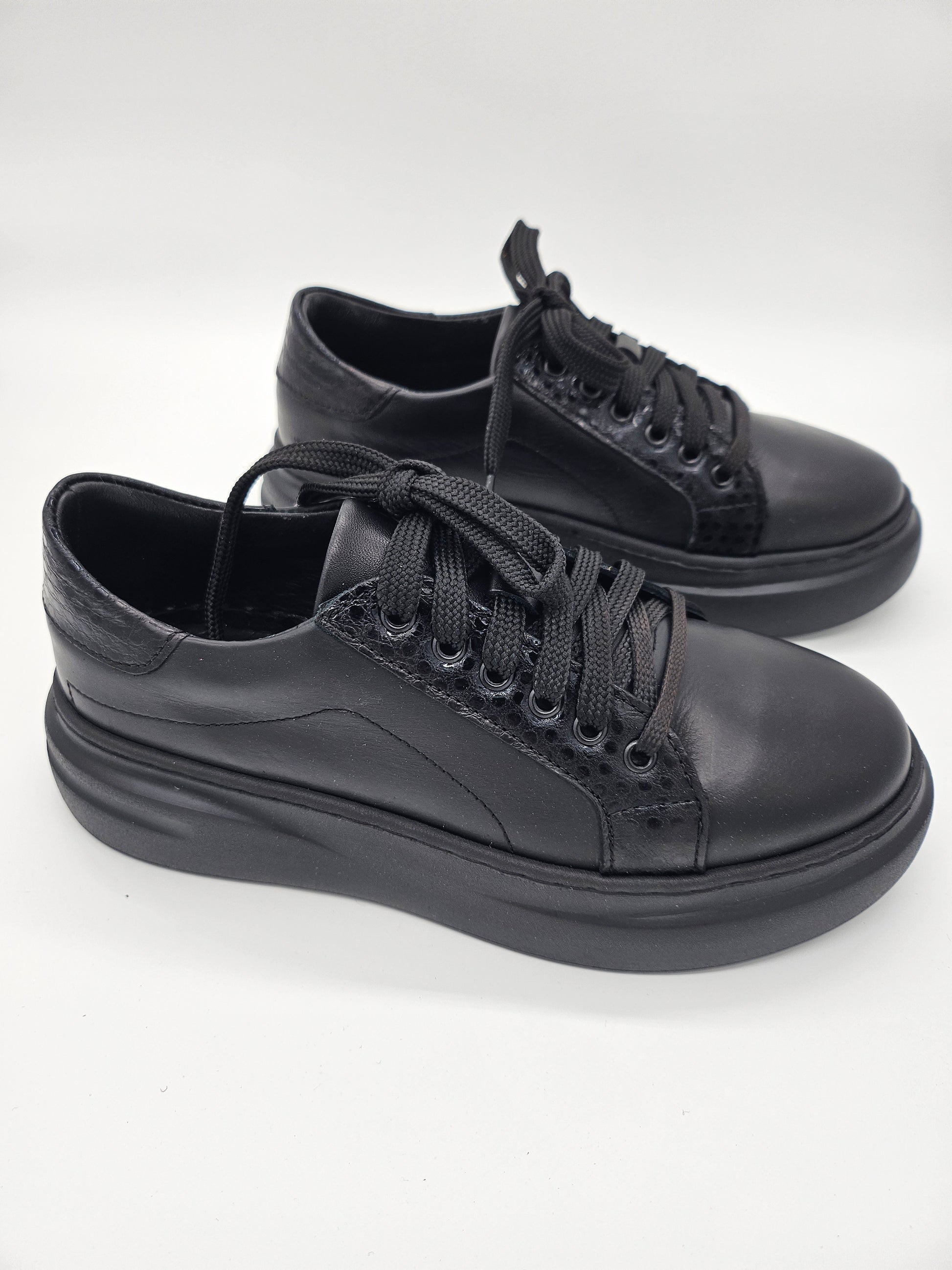 Потопете се в свят на комфорт и стил с нашите черни дамски обувки, създадени за жената, която цени едновременно елегантността и практичността. Изработени от 100% естествена кожа, тези обувки не са просто аксесоар – те са инвестиция в самочувствие и удобство.